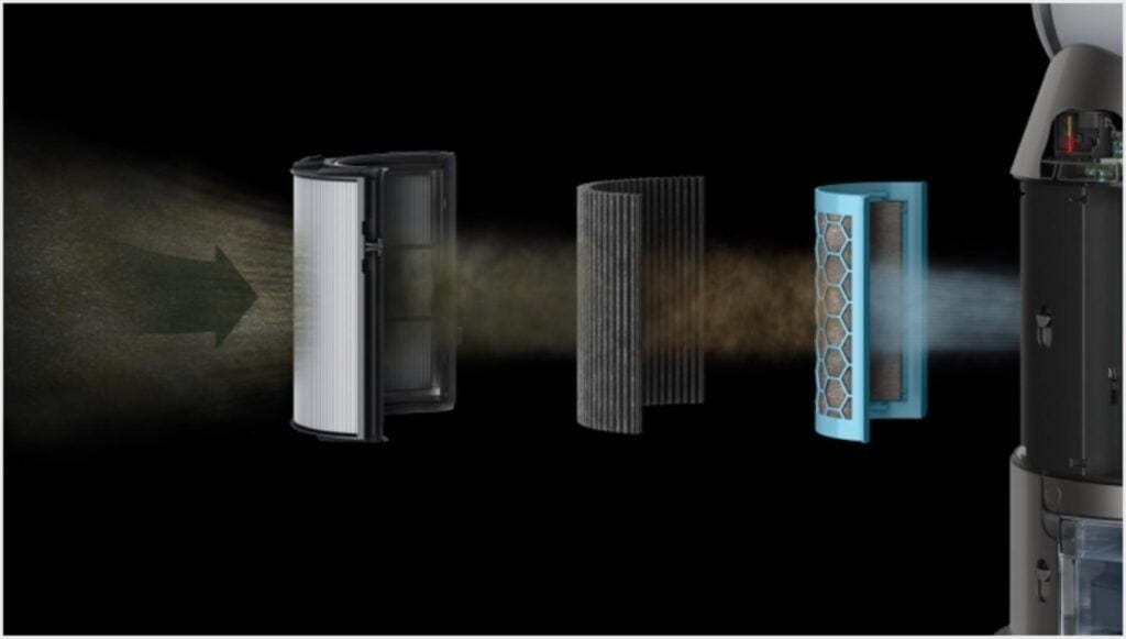 - Filtrul de formaldehidă – e un mare plus. Foarte puține aparate detectează și neutralizează acest compus, iar dacă ai mobilă mai veche, parchet nou sau ai renovat recent, chiar contează.